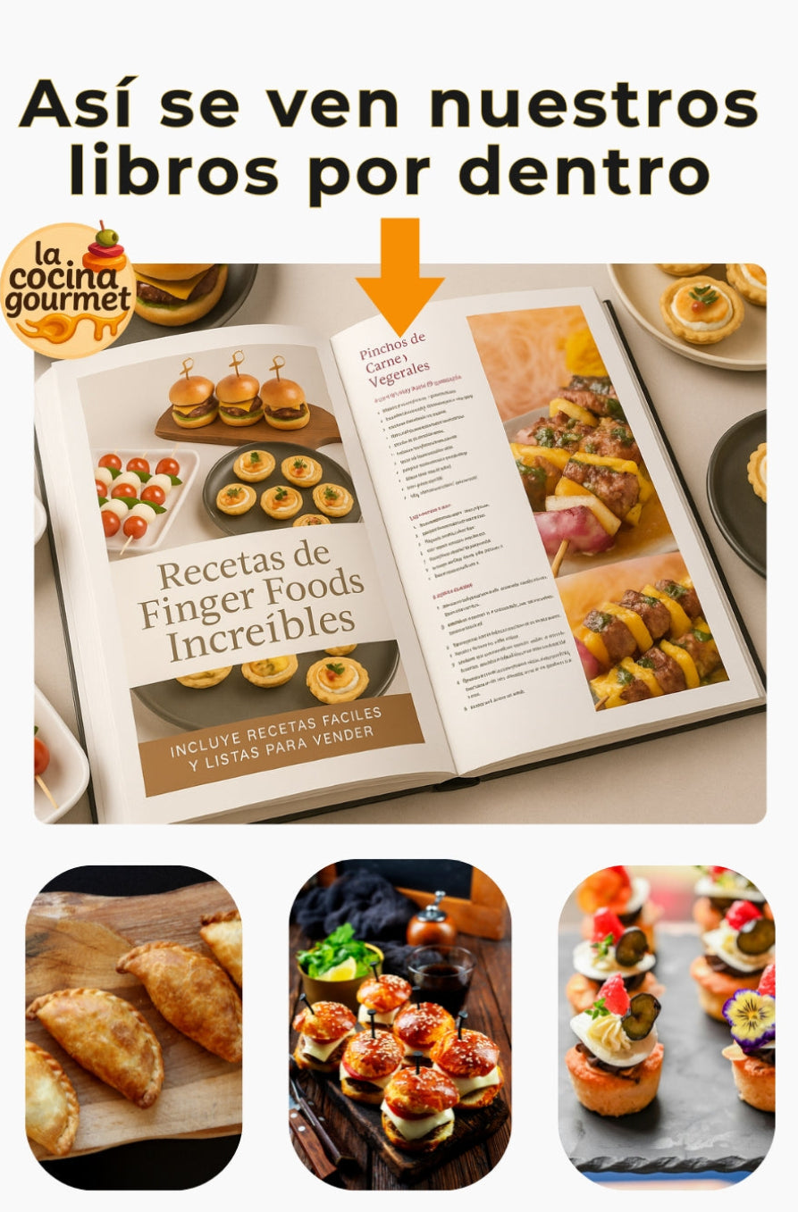 Colección 12x1 Libros Digitales Bocaditos Gourmet 🍽️🍢🍔 +300 Recetas