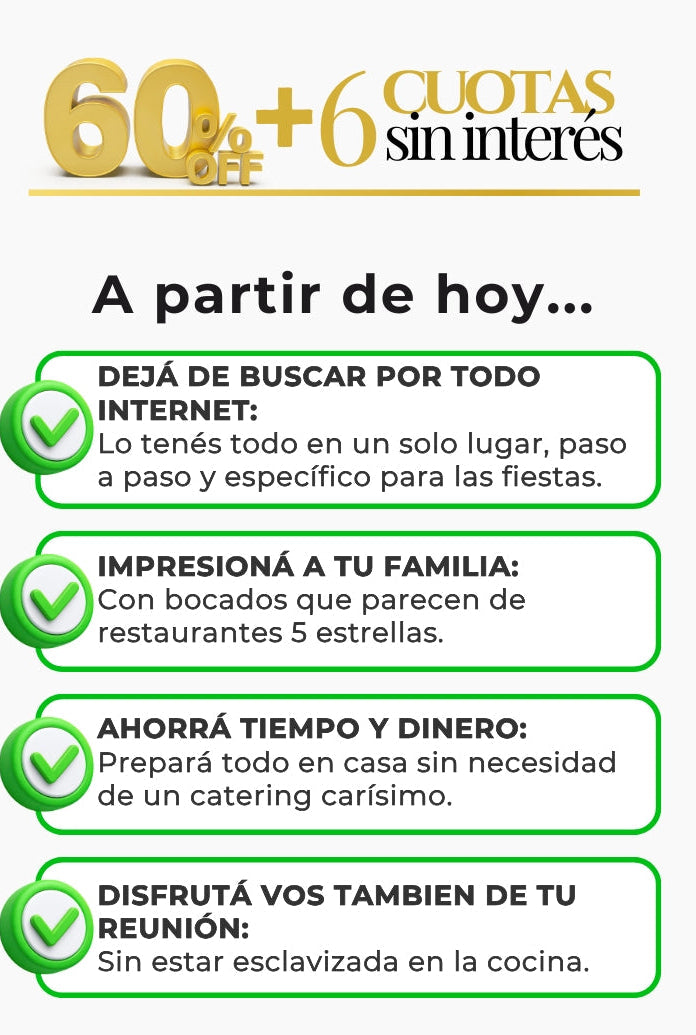 Por menos de lo que cuesta una sola salida, hoy te llevas el secreto para sorprender en cada reunión y ahorrar miles de pesos en catering para siempre.